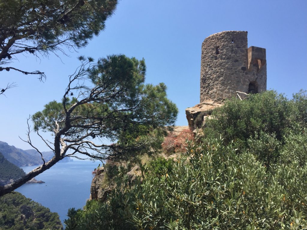 … oder „Torre de Sei Animes“ – Turm der Seelen ist ein Wehrturm aus dem 16. Jahrhundert und steht etwa 50 m von der Ma – 10 entfernt auf einem einem Felsvorsprung, ca 600 Meter über dem Meer, ca. 2 km vor Banyalbufar.