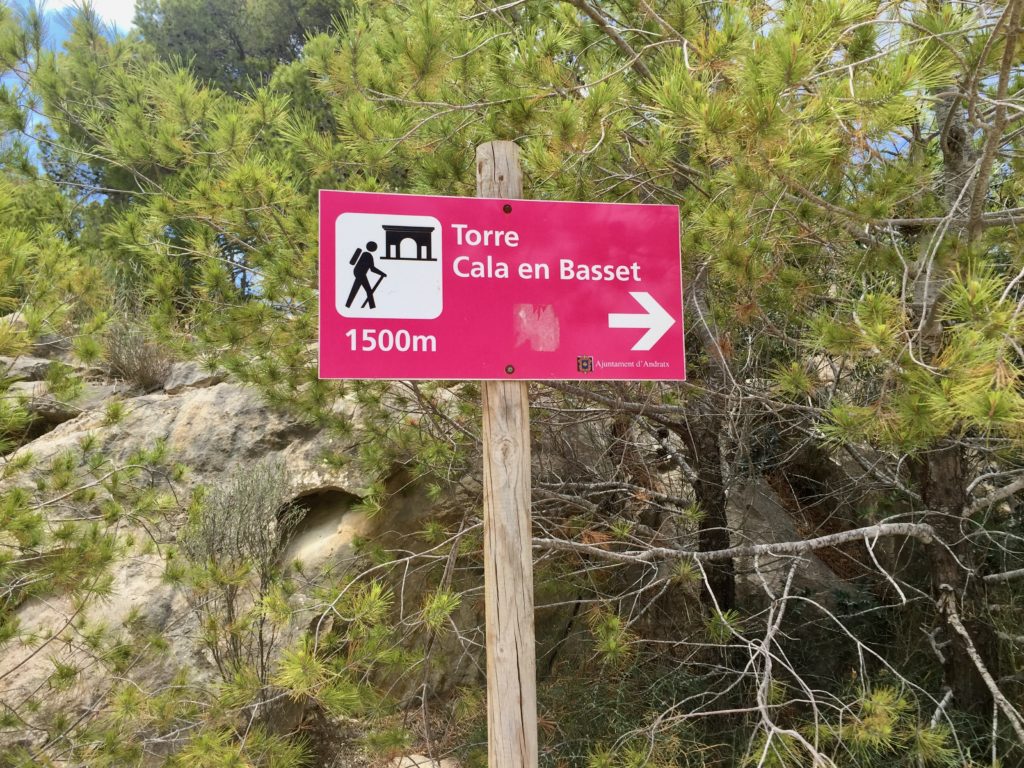 … wie auch diese Tafel, oberhalb vom Punt Blanc, uns den Weg zum „Cala en Basset-Turm“ zeigt.