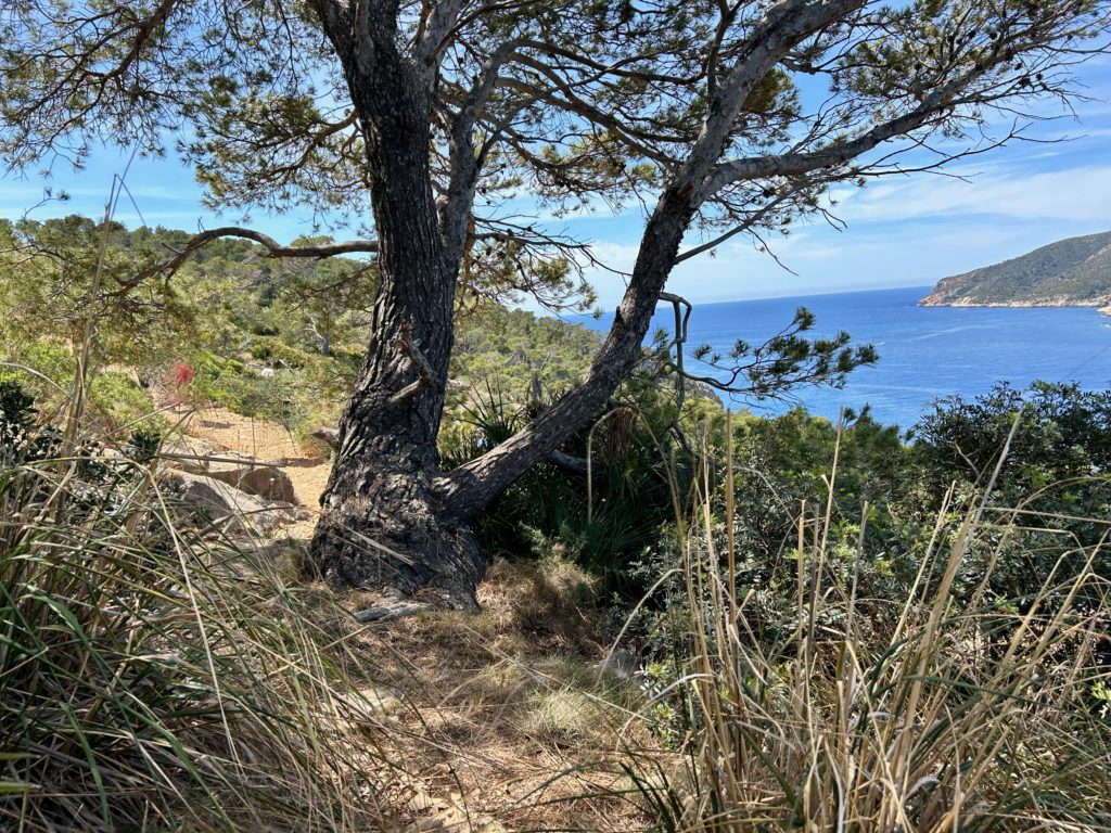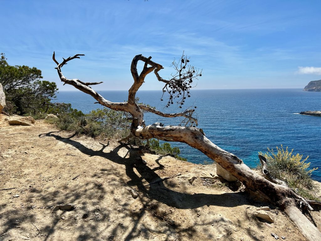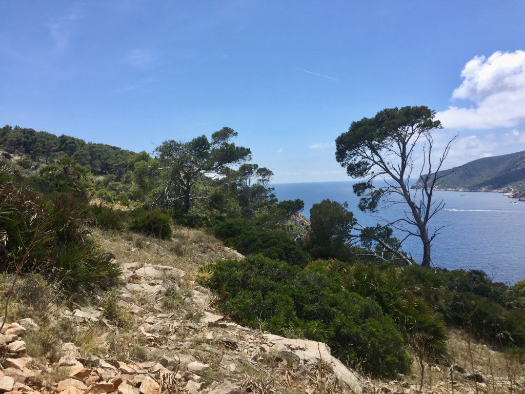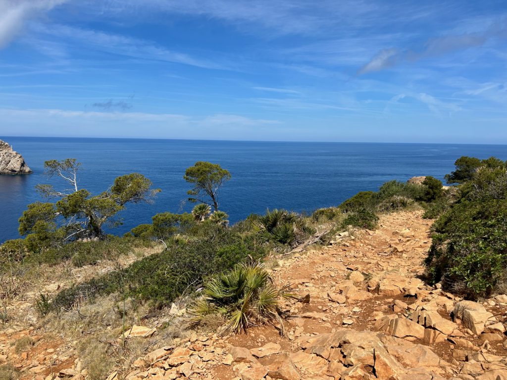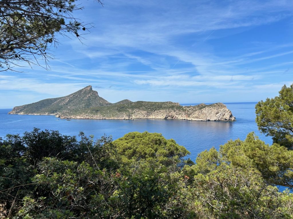 Hier beim Punt Blanc (oberhalb von Sant Elm) geniesst man eine wunderbare Sicht zur Insel Sa Dragonera https://de.balearsnatura.com/parque_natural/parque-natural-de-sa-dragonera/ und zu den Signallichter vom „Sa Mirjana“. Das ist eine kleine künstliche Insel aus Steinhaufen, welche als Wegweiser und Linienführung für die Schifffahrt dient.