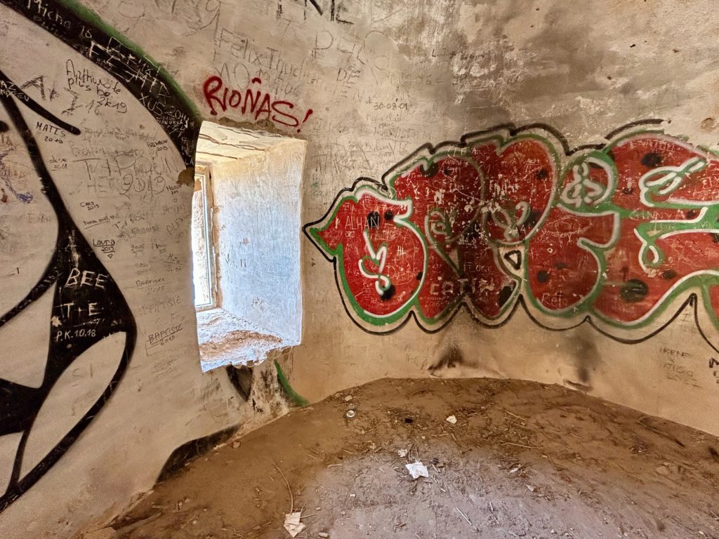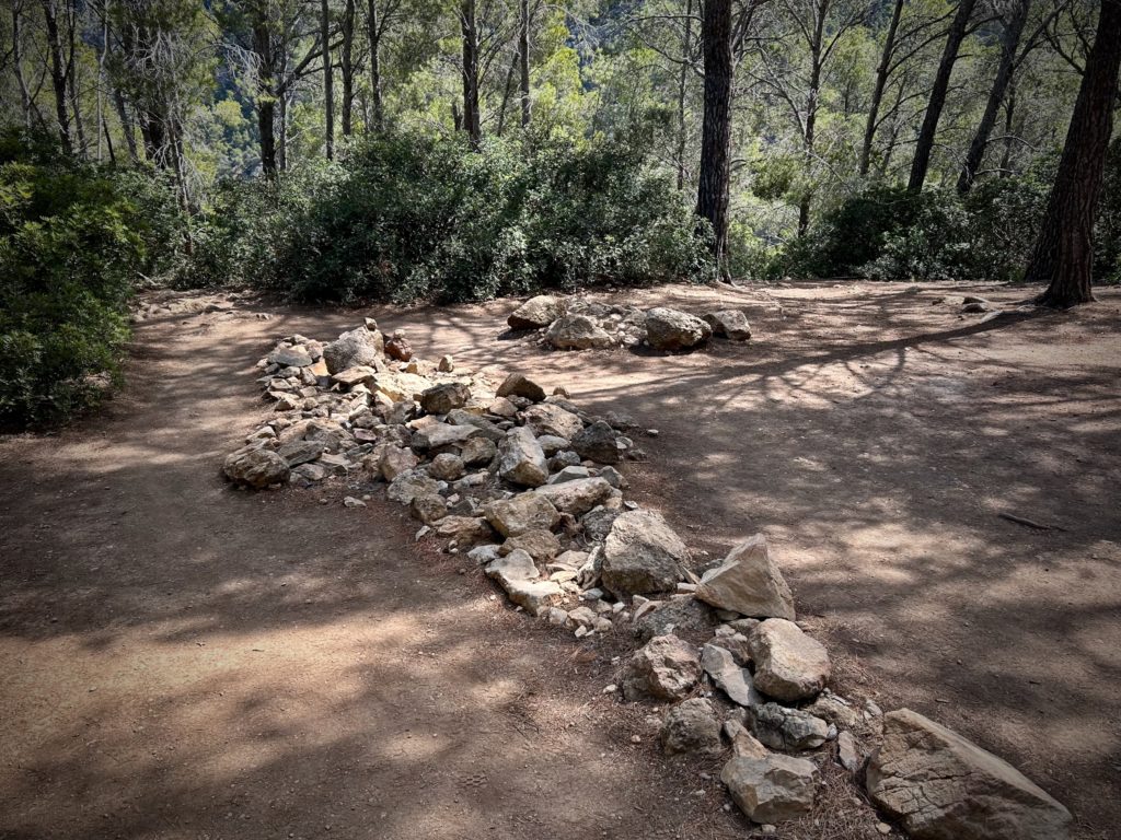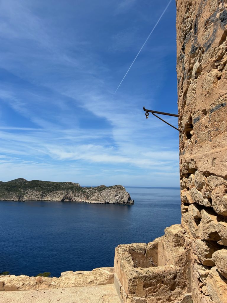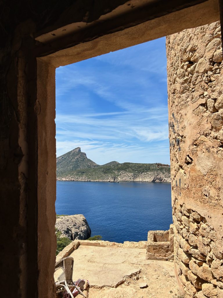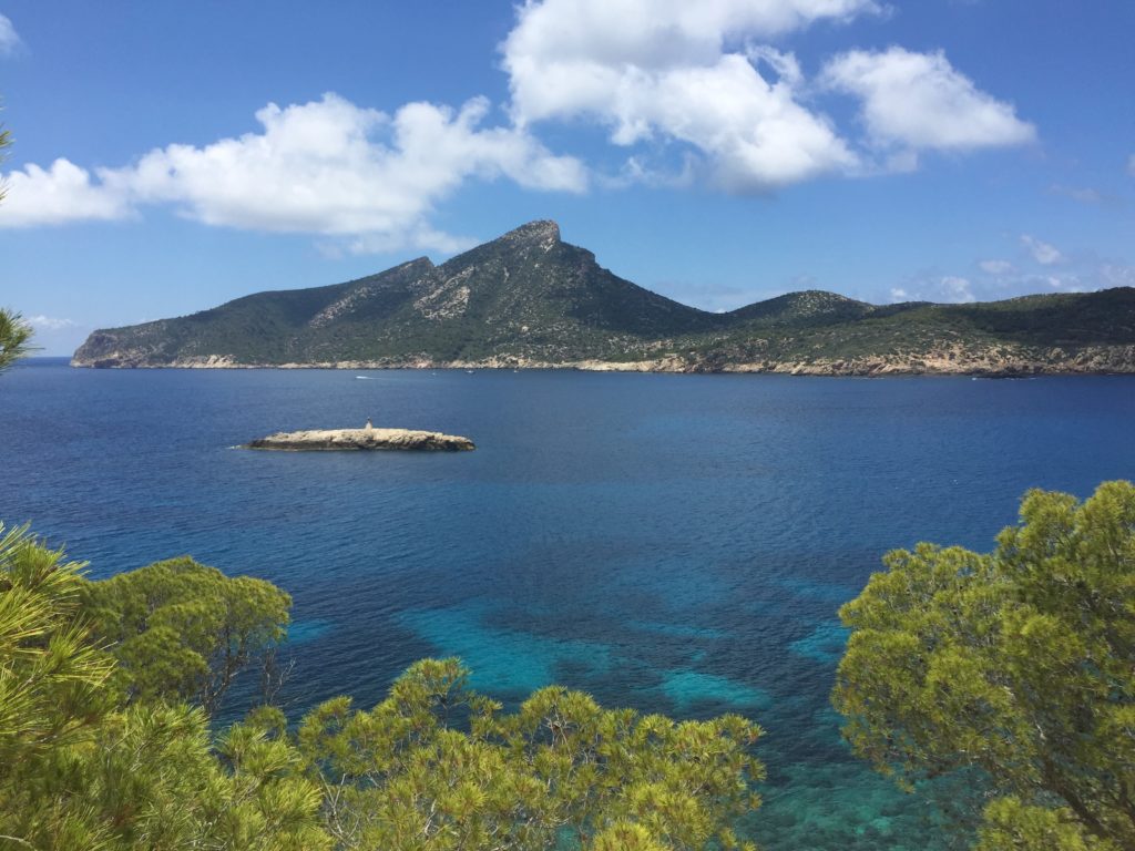 Hier beim Punt Blanc (oberhalb von Sant Elm) geniesst man eine wunderbare Sicht zur Insel Sa Dragonera https://de.balearsnatura.com/parque_natural/parque-natural-de-sa-dragonera/ und zu den Signallichter vom „Sa Mirjana“. Das ist eine kleine künstliche Insel aus Steinhaufen, welche als Wegweiser und Linienführung für die Schifffahrt dient.