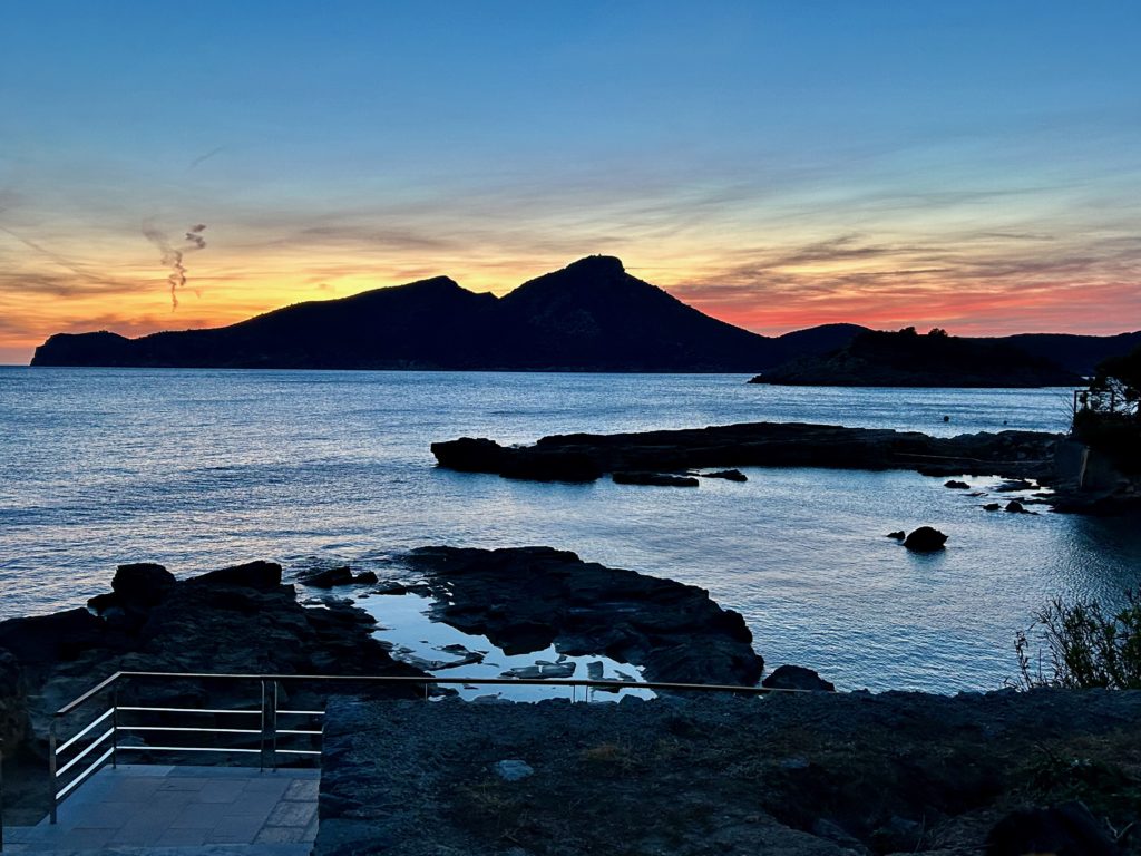 … auch in Erinnerung an unsere Wanderung über die Dracheninsel „Sa Dragonera“. Dragonern zeigt sich auf unserem jetzigen Trip, je nach Wegbiegung immer wieder im besten Licht – wie gerade hier – sogar direkt auf die westlichste Spitze zum „Far de Tramuntana“. Siehe dazu folg. Beitrag: https://blog.muttiswelt.ch/2024/01/05/schau-ins-land/