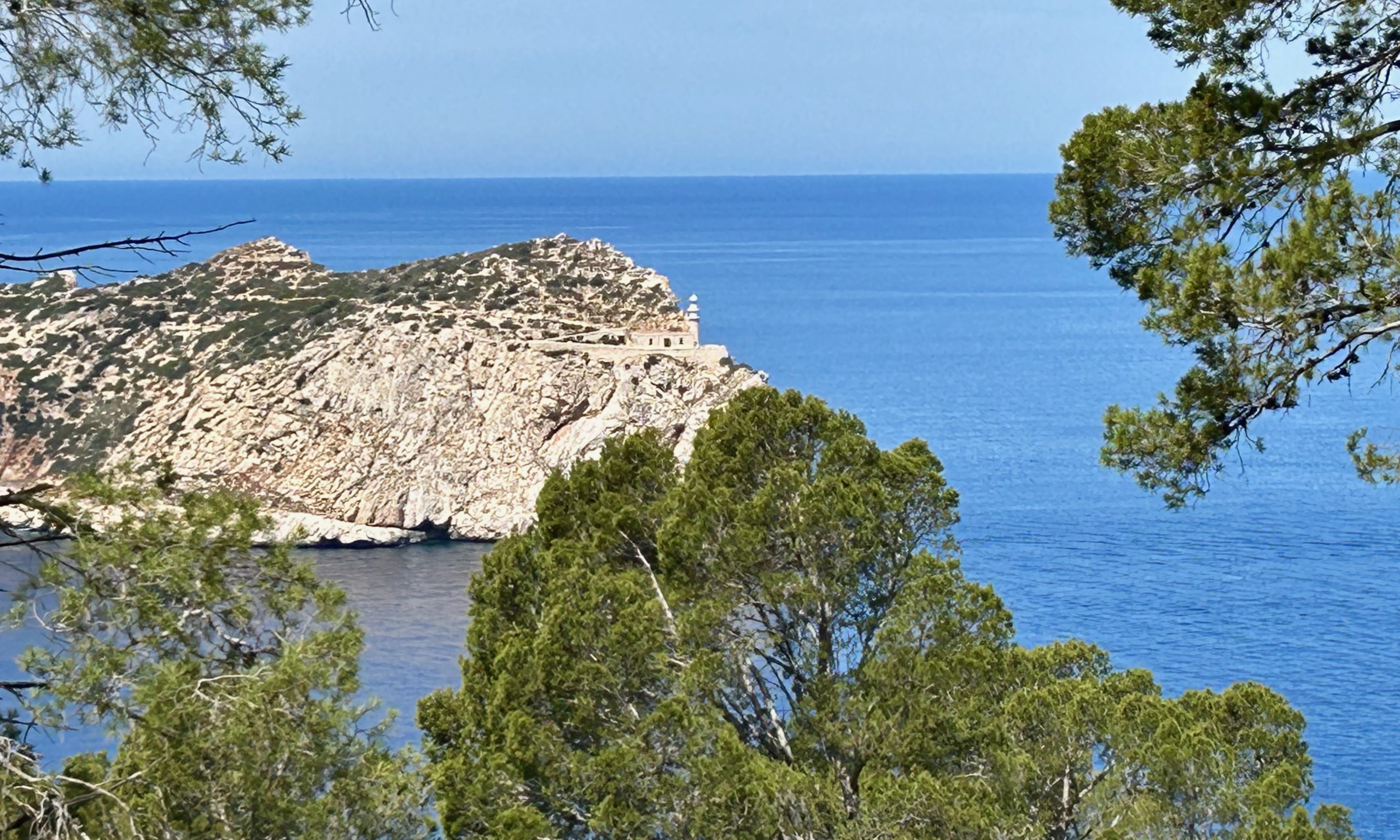 Hier beim Punt Blanc (oberhalb von Sant Elm) geniesst man eine wunderbare Sicht zur Insel Sa Dragonera https://de.balearsnatura.com/parque_natural/parque-natural-de-sa-dragonera/ und zu den Signallichter vom „Sa Mirjana“. Das ist eine kleine künstliche Insel aus Steinhaufen, welche als Wegweiser und Linienführung für die Schifffahrt dient.