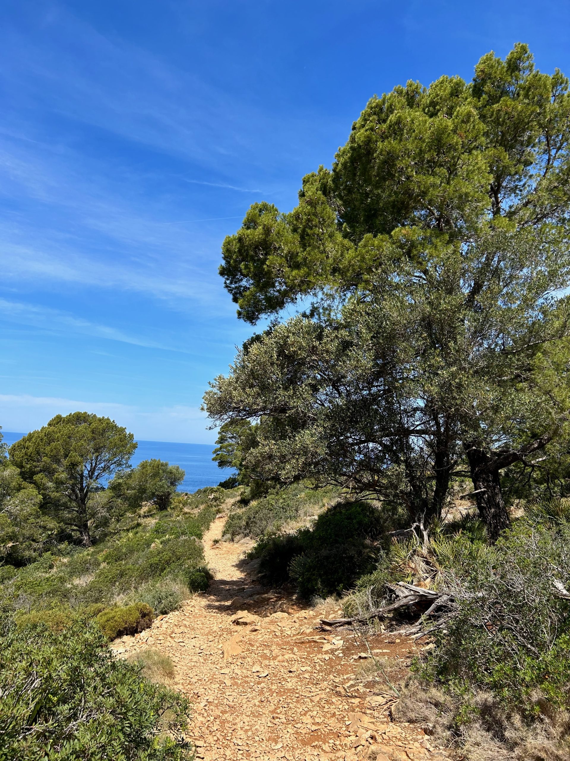 … auch in Erinnerung an unsere Wanderung über die Dracheninsel „Sa Dragonera“. Dragonern zeigt sich auf unserem jetzigen Trip, je nach Wegbiegung immer wieder im besten Licht – wie gerade hier – sogar direkt auf die westlichste Spitze zum „Far de Tramuntana“. Siehe dazu folg. Beitrag: https://blog.muttiswelt.ch/2024/01/05/schau-ins-land/