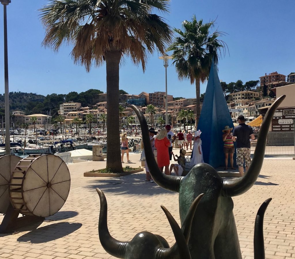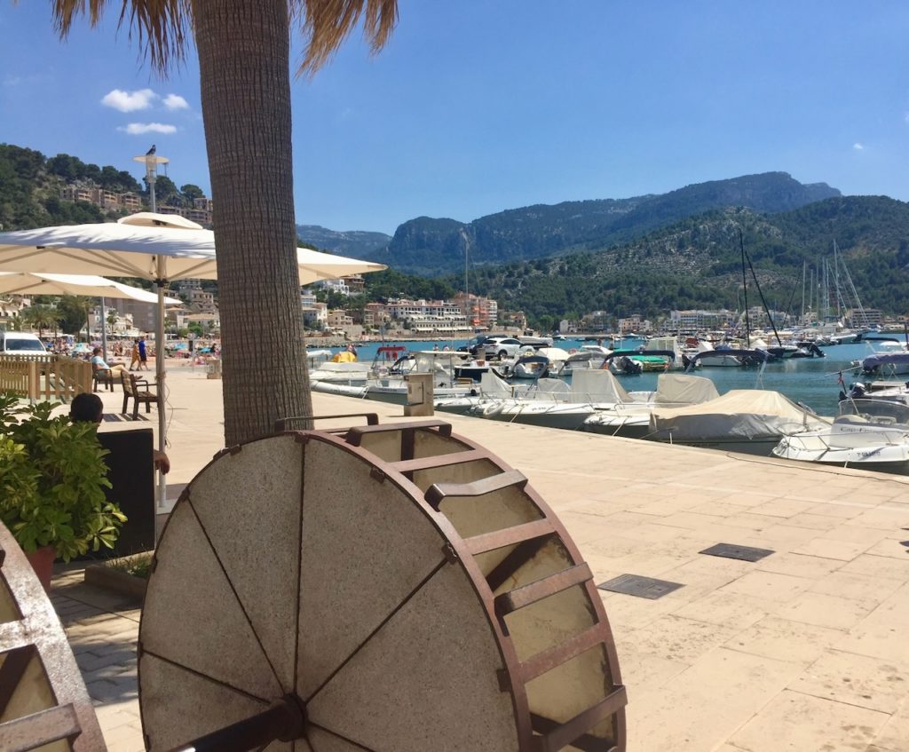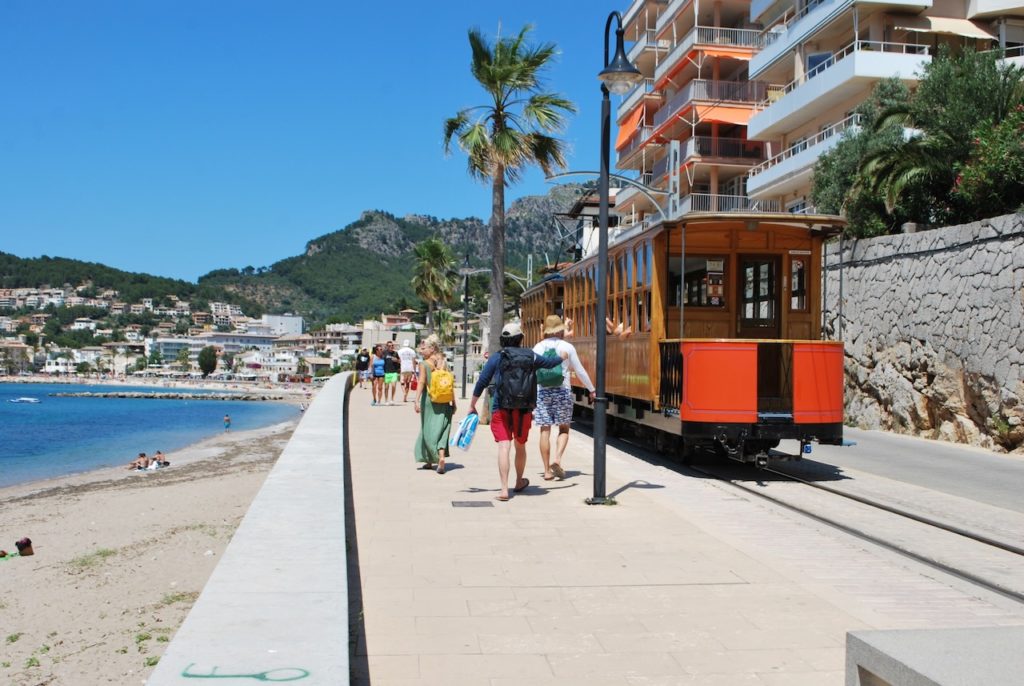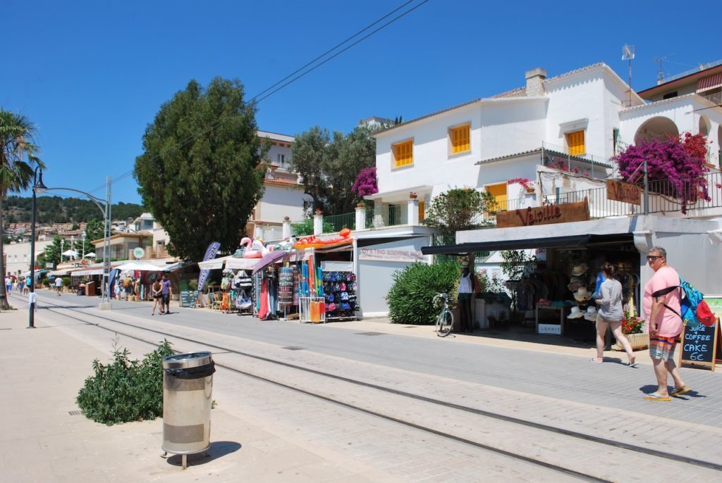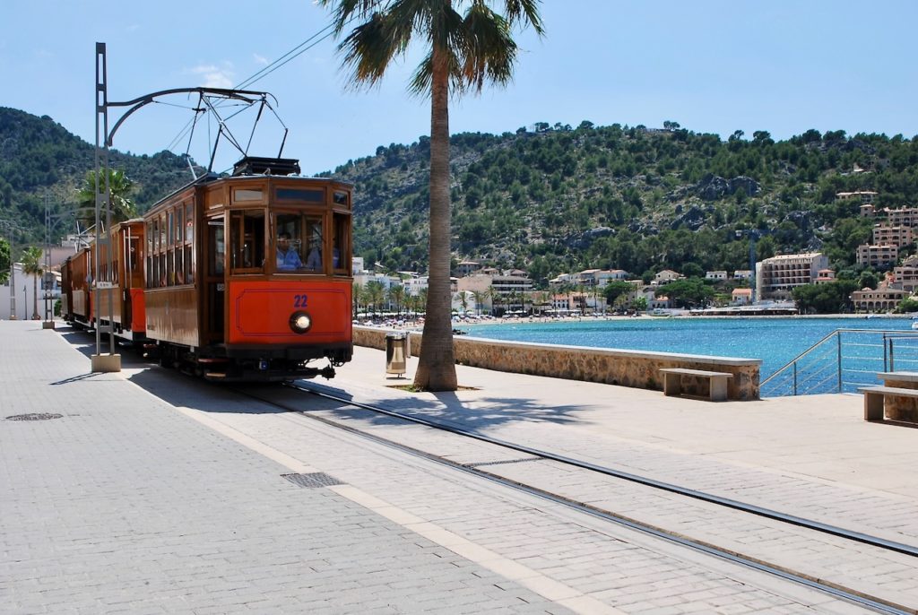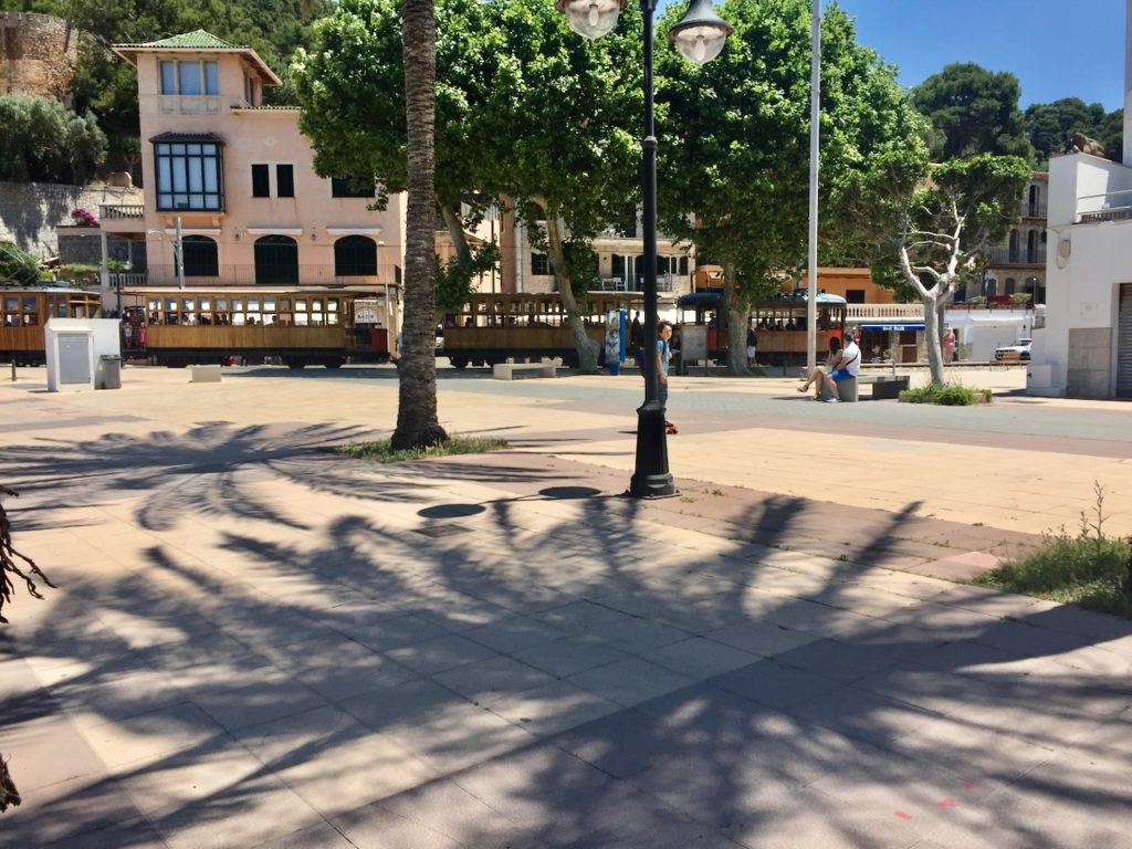 … liegt nordwestlich am Fusse der Serra de Tramuntana und ist ein Ortsteil vom rund vierzig Meter höher gelegenen Städtchen Sóller. Das „Sóller-Bähnchen“- im San Francisco-Stil – tuckert und ruckelt im Halbstundentakt, die sieben Kilometer lange Strecke zwischen Puerto de Sóller und Sóller – Stadt, rauf und runter.