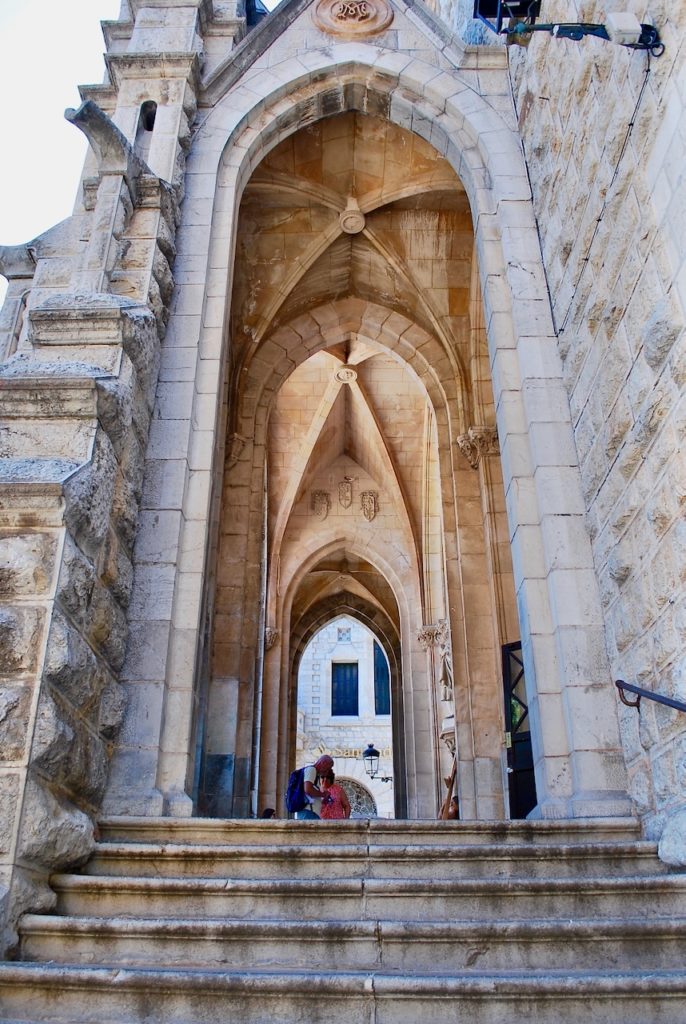 Beim Seiteneingang kann man noch die ursprünglichen barocken Festungsmauern aus dem 17. Jh. erkennen. Joan Rubió i Bellver hat diese, bei seinen Renovationsarbeiten im neugotischen Stil, teilweise stehen gelassen.