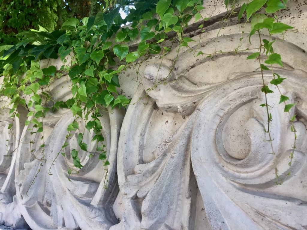 Besonders fällt die überdimensionale Fensterrosette in der Mitte der Fassade auf …
