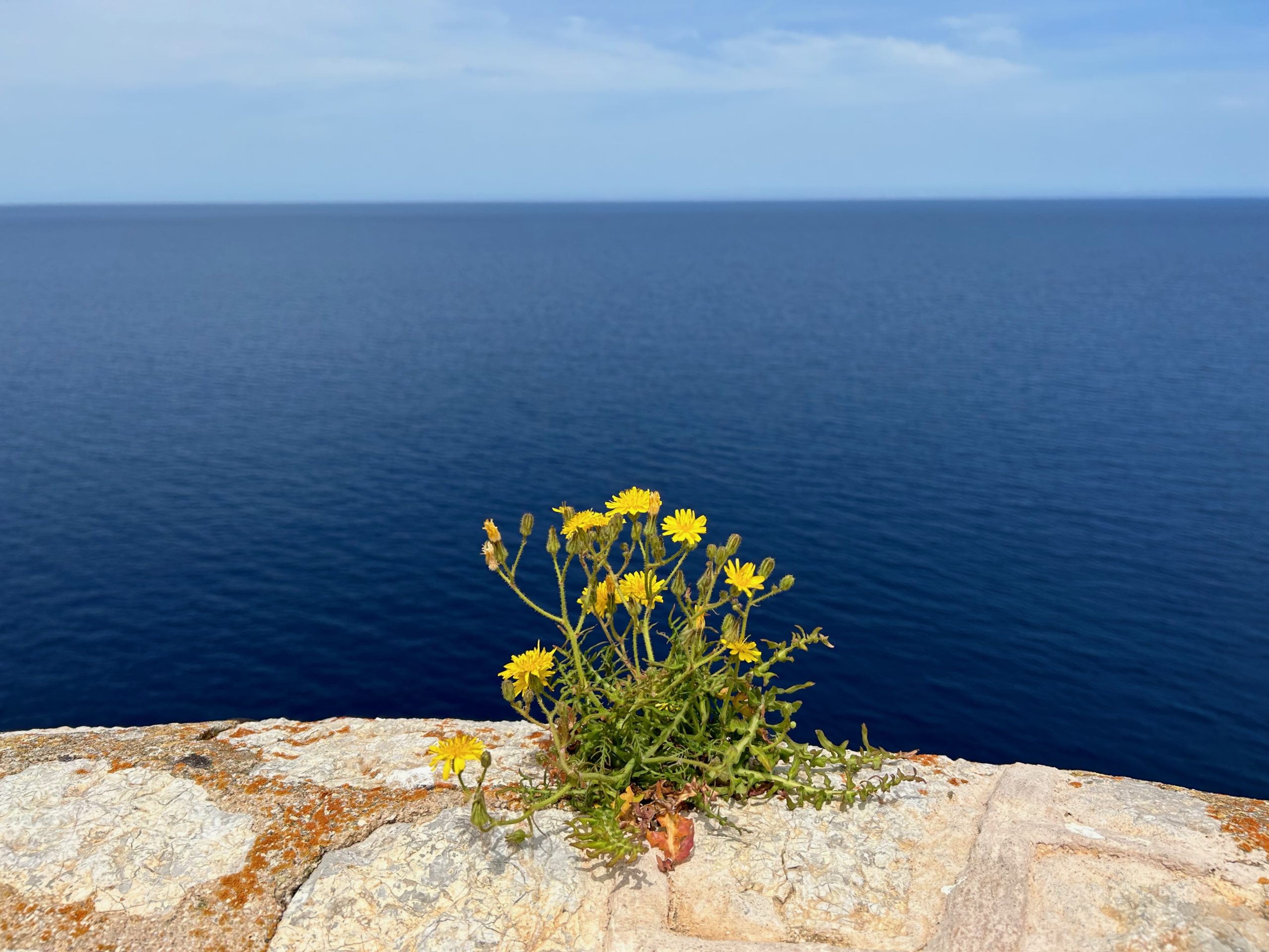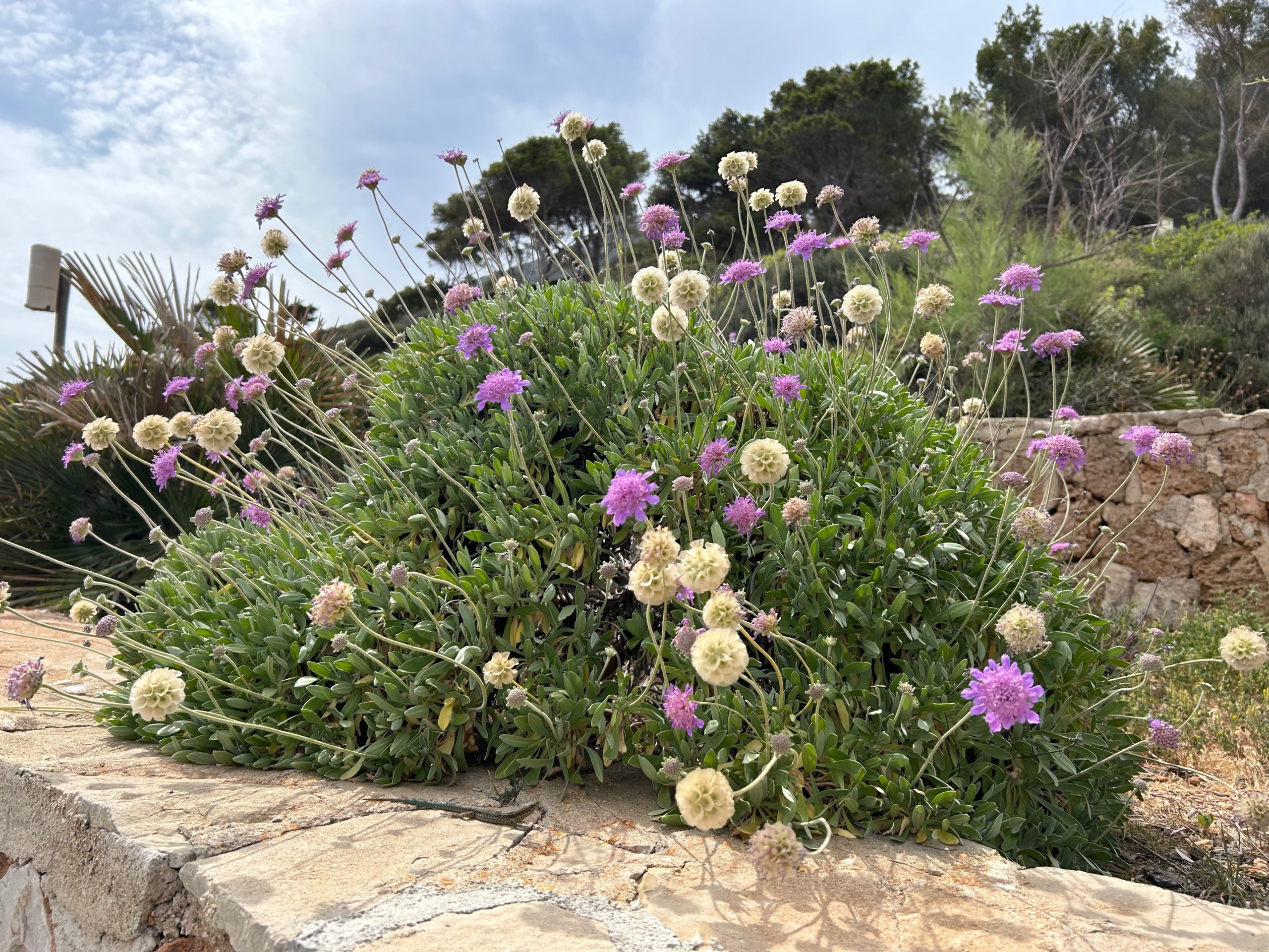 Ja, bei diesen wunderbaren Blumenarrangements (wie hier beim Far de Tramuntana) da kann man doch mal ganz still sitzen und etwas zu sich kommen.